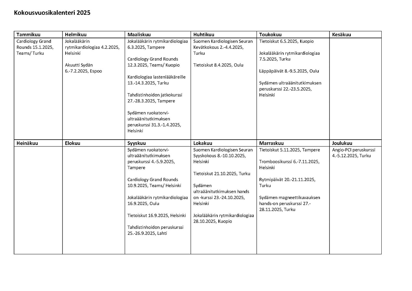 Suomen Kardiologisen Seuran järjestämät koulutukset löydät koulutukset-alasivulta.