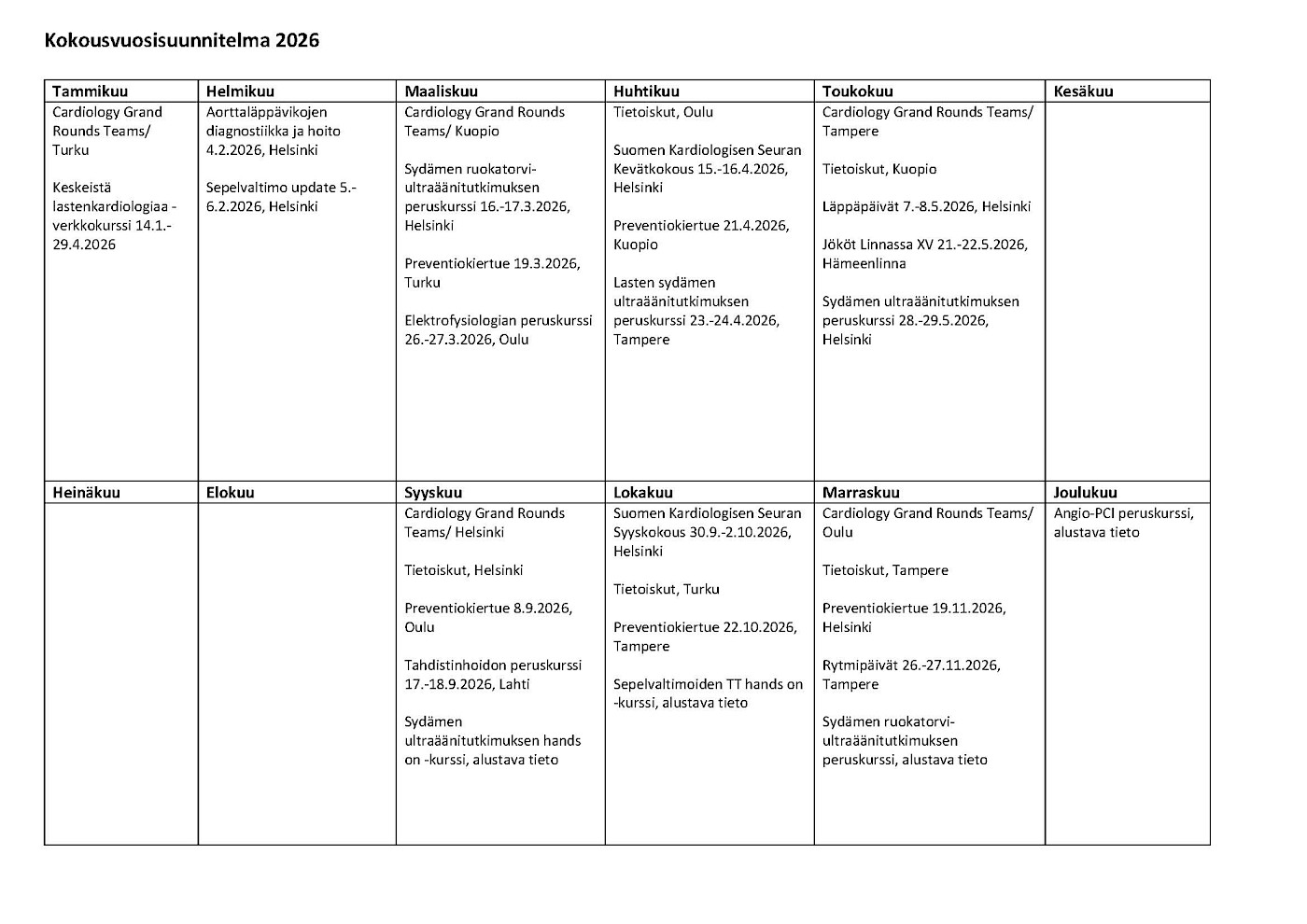 Suomen Kardiologisen Seuran järjestämät koulutukset löydät koulutukset-alasivulta.
