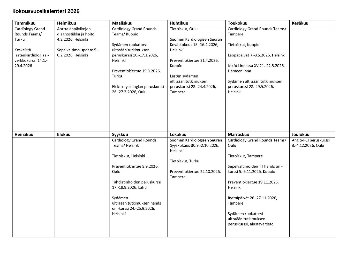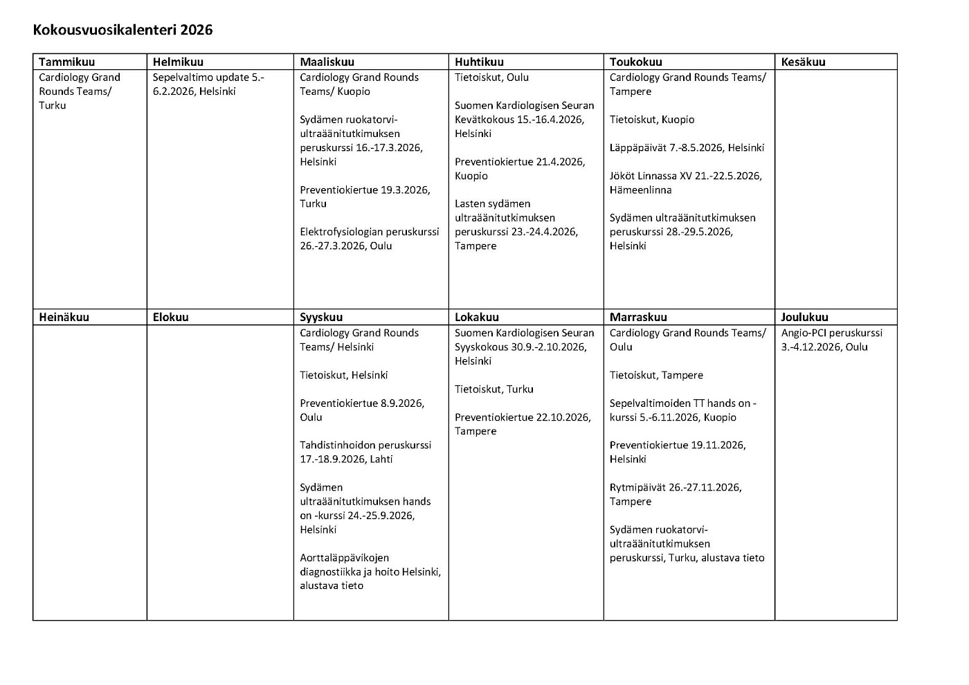Suomen Kardiologisen Seuran järjestämät koulutukset löydät koulutukset-alasivulta.
