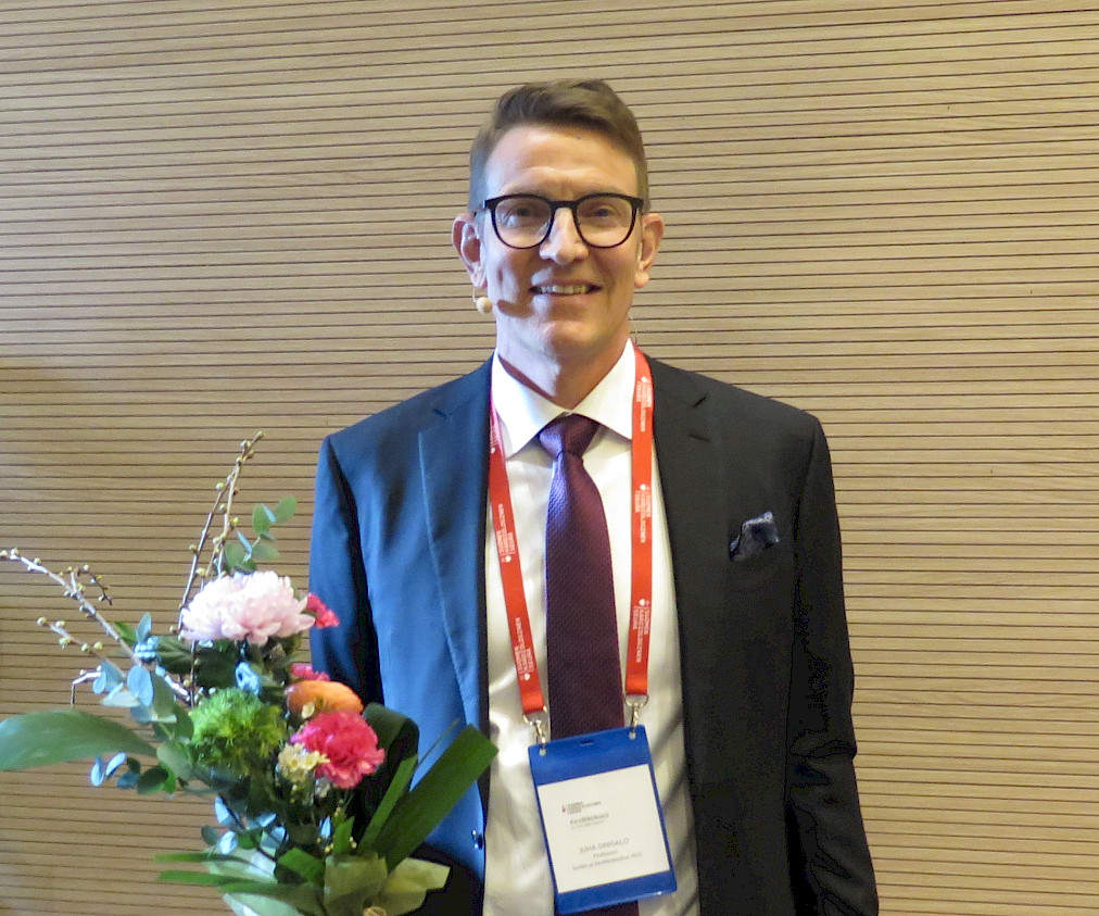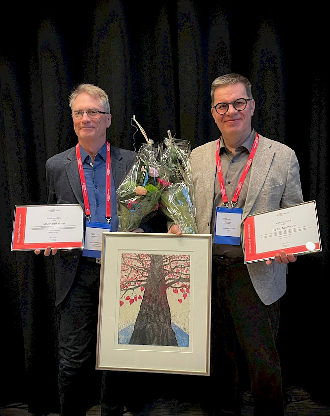 professori, dosentti, kardiologian ja sisätautien erikoislääkäri, LT Juha Hartikaiselle (kuvassa vasemmalla) ja